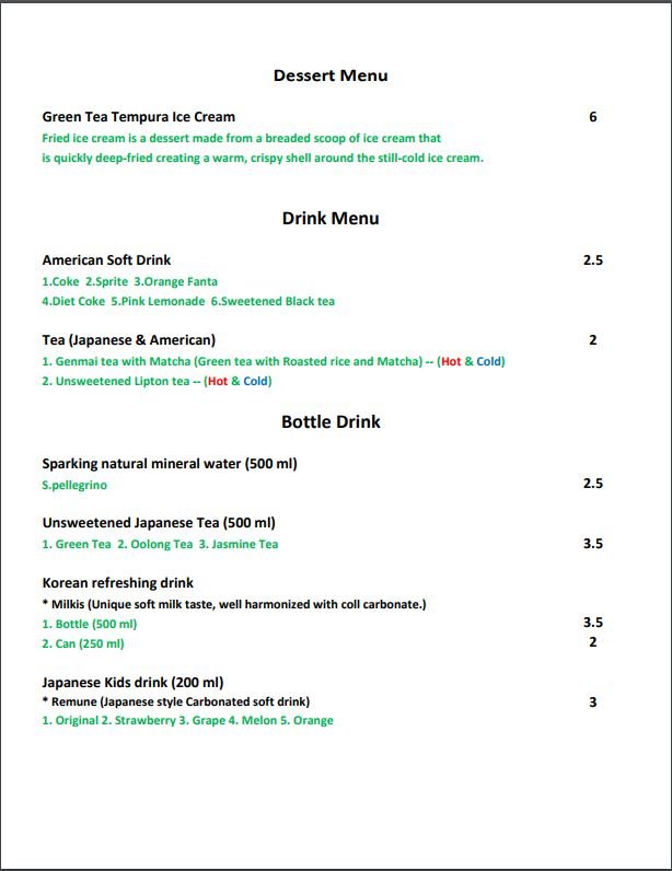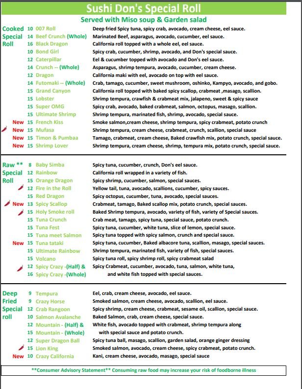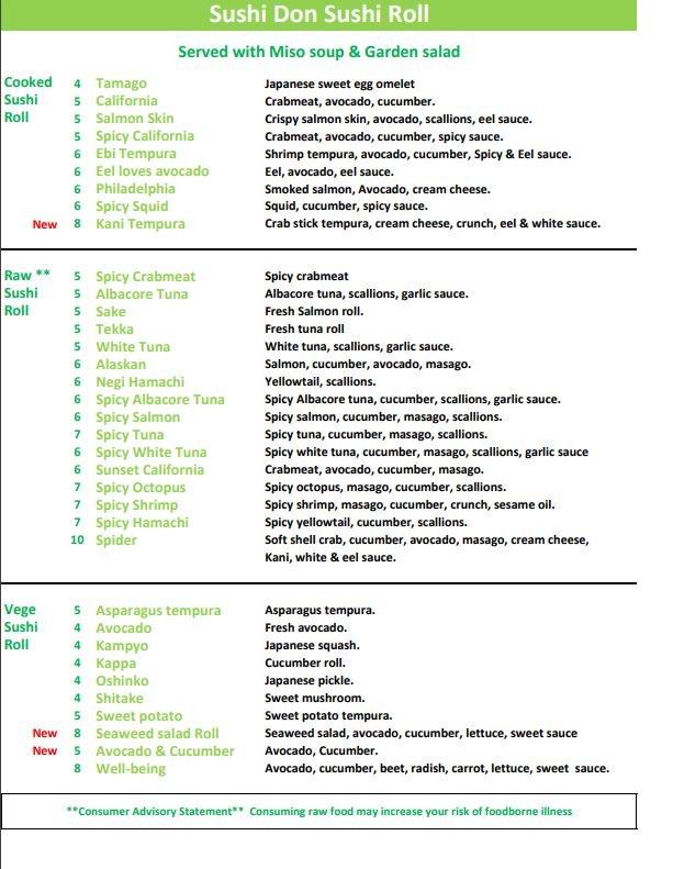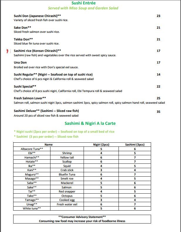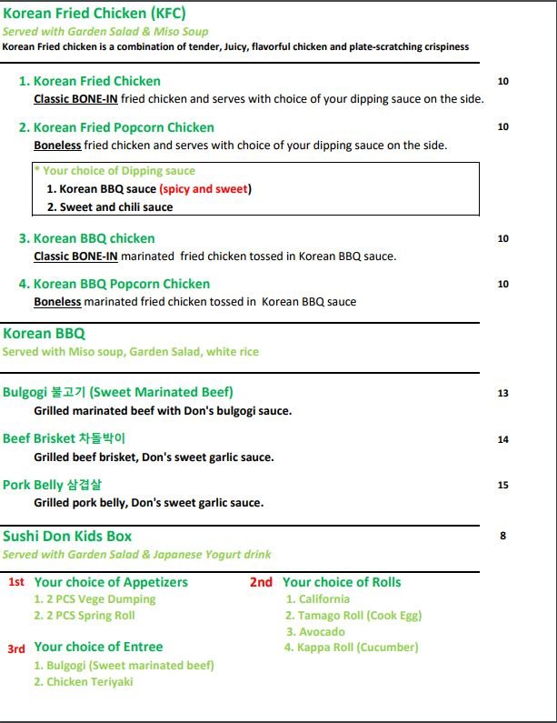 Sushi Don Menu