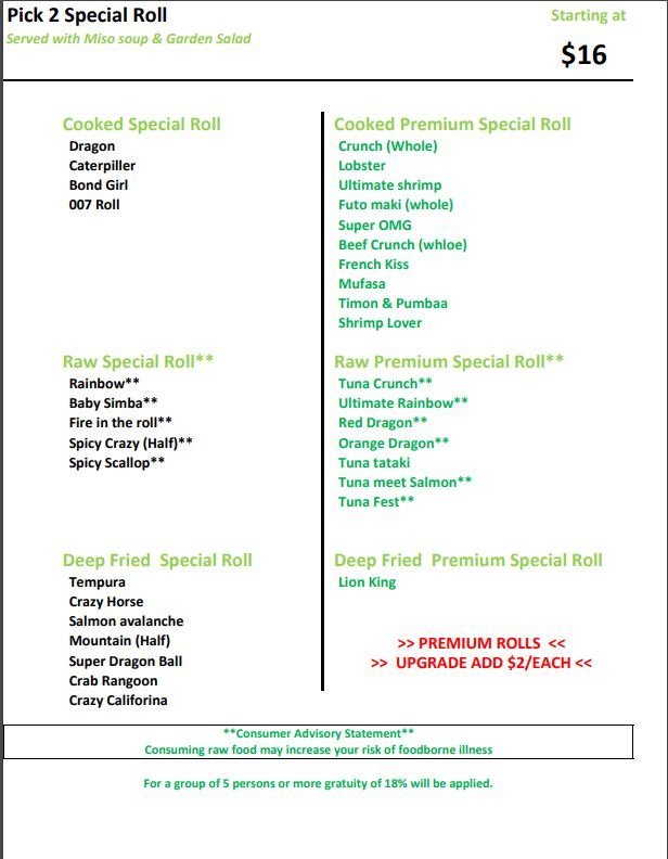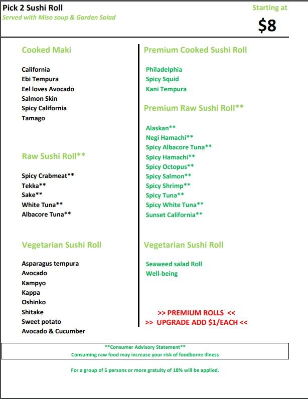 Raw Sushi Rolls (Online)